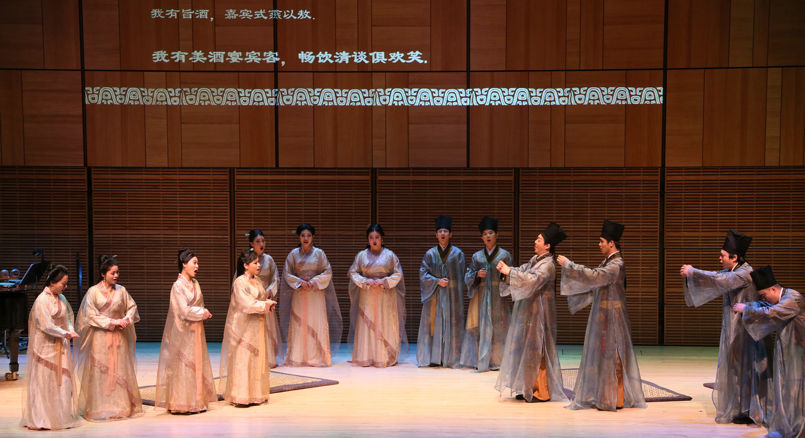 【侨报记者管黎明6月13日纽约报道】“吃草的鹿儿在欢唱,高朋满座论天下,琴瑟和谐、把酒言欢”;“青草露珠好景象,邂逅美人动我心,有缘相识盼携手”;“皎洁的月光映衬你美丽的容颜,婀娜多姿的身影让我魂牵梦萦”…… 这些幽美的歌词描述的是一个三千多年前的东方爱情故事,13日晚,它们响起在纽约的最高艺术殿堂 —— 卡耐基音乐厅,让现场数百名观众仿佛置身于另一个时空。